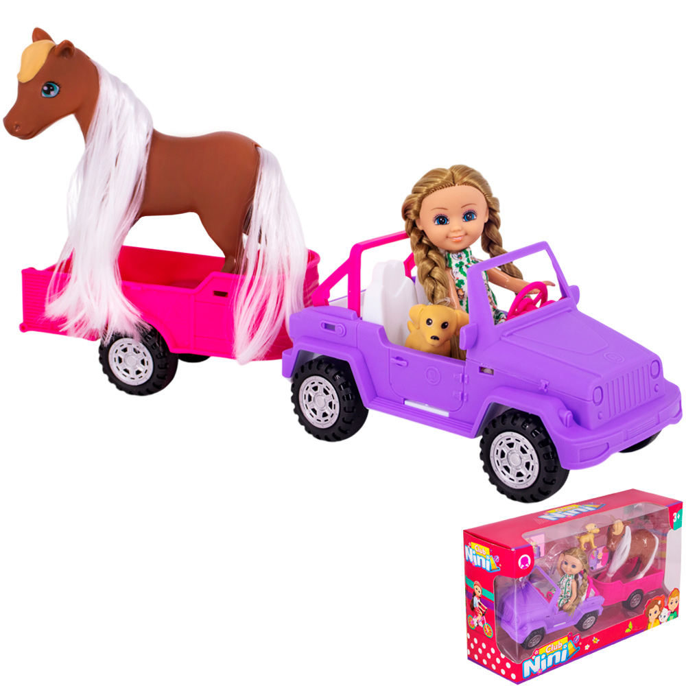 Кукла малышка 55879 с лошадкой на машине в кор.